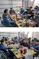 【第16期決算後の食事会】 今期末の食事会を行いました。新人も入り、先輩からのユニークな激励や腕相撲大会も行われ、楽しくにぎやかな食事会となりました。美味しい食事でリフレッシュし、新たな仲間と共に来期も頑張ってまいります。これからも(株)佐野総合建設をよろしくお願いいたします。 |